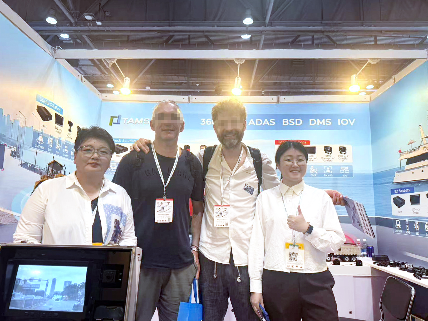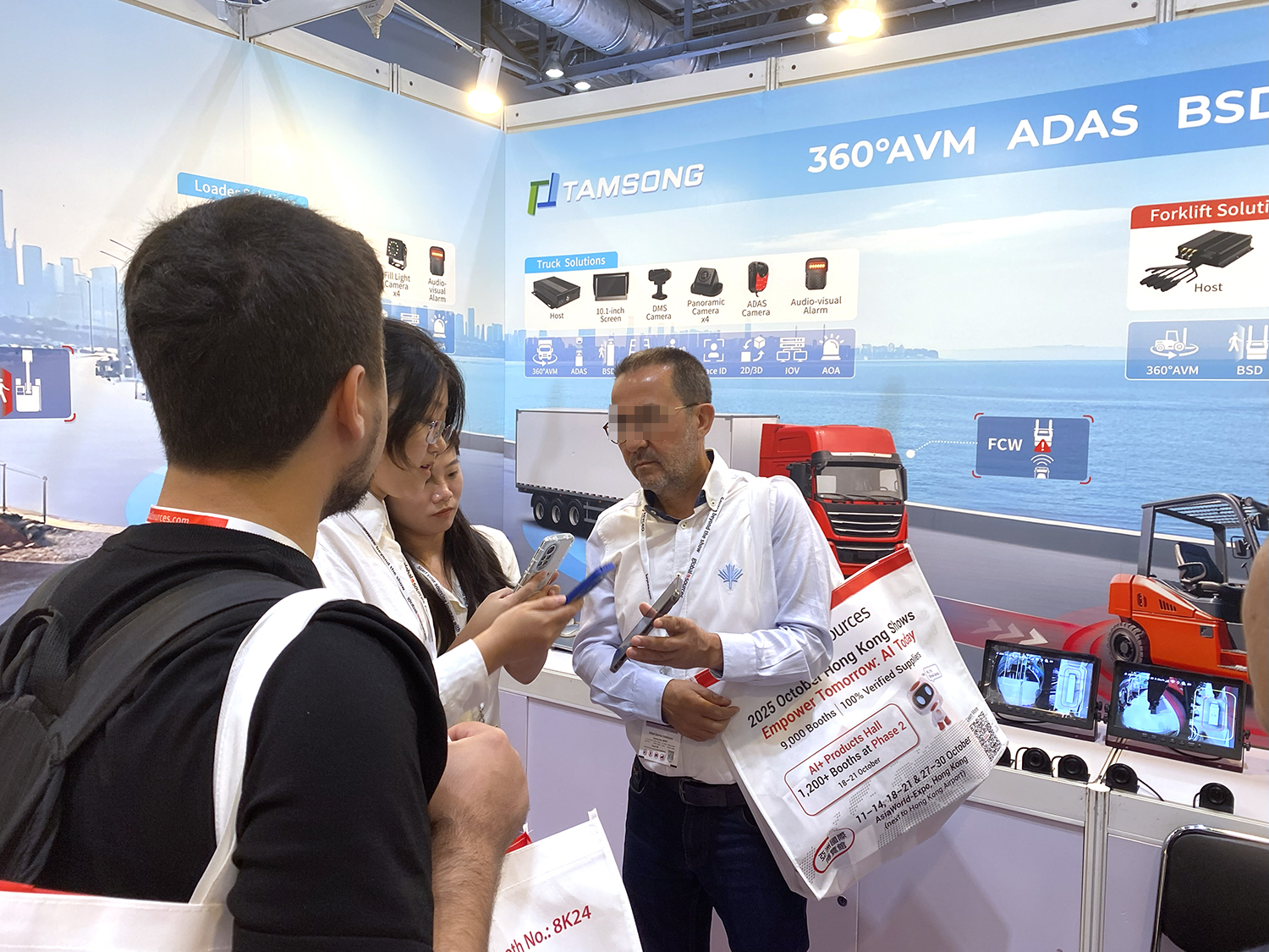 场景化解决方案吸引海外客户驻足关注,现场通过道路交通车辆ADAS预警、工程机械盲区监测等案例演示,展现天双科技视觉感知算法产品在行业四大垂直领域的落地能力。