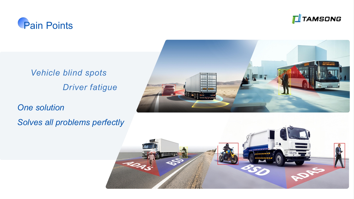 本次展出的新系列AI一体机实现多功能整合,不仅集成 360°全景环视、BSD(盲区监测)、ADAS(高级驾驶辅助系统)、DMS(驾驶员监控系统)等视觉感知算法核心能力;还创新采用红外热成像+可见光融合技术,可大幅提升雨雾、无光等复杂场景的感知精度。从而有效解决道路交通车辆与工程机械车辆在实际使用场景中的痛点问题。
